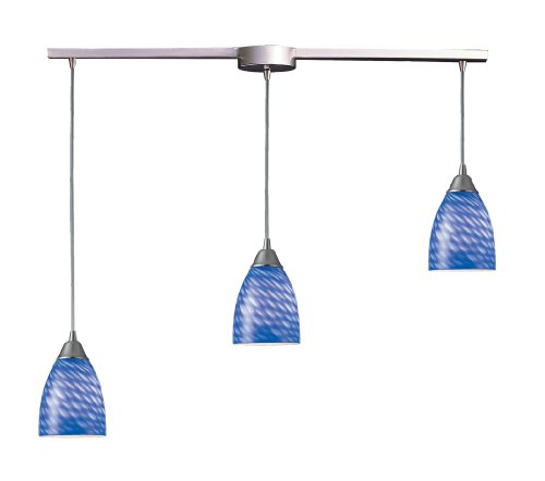 Consumer Reviews Elk 416-3L-S 3 Satin Nickel and Sapphire Glass Pendant Light